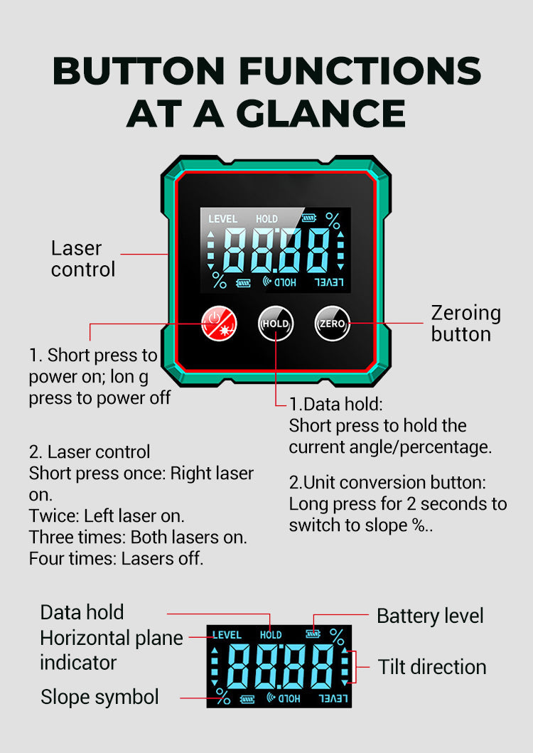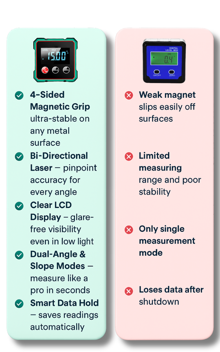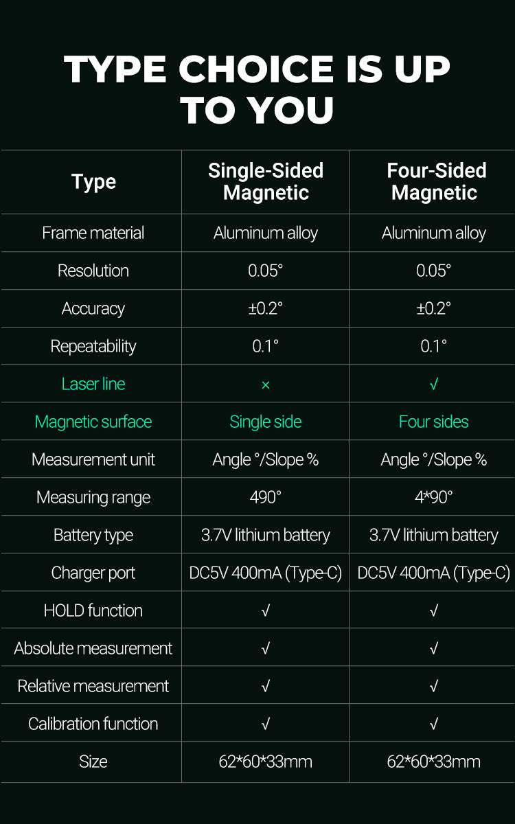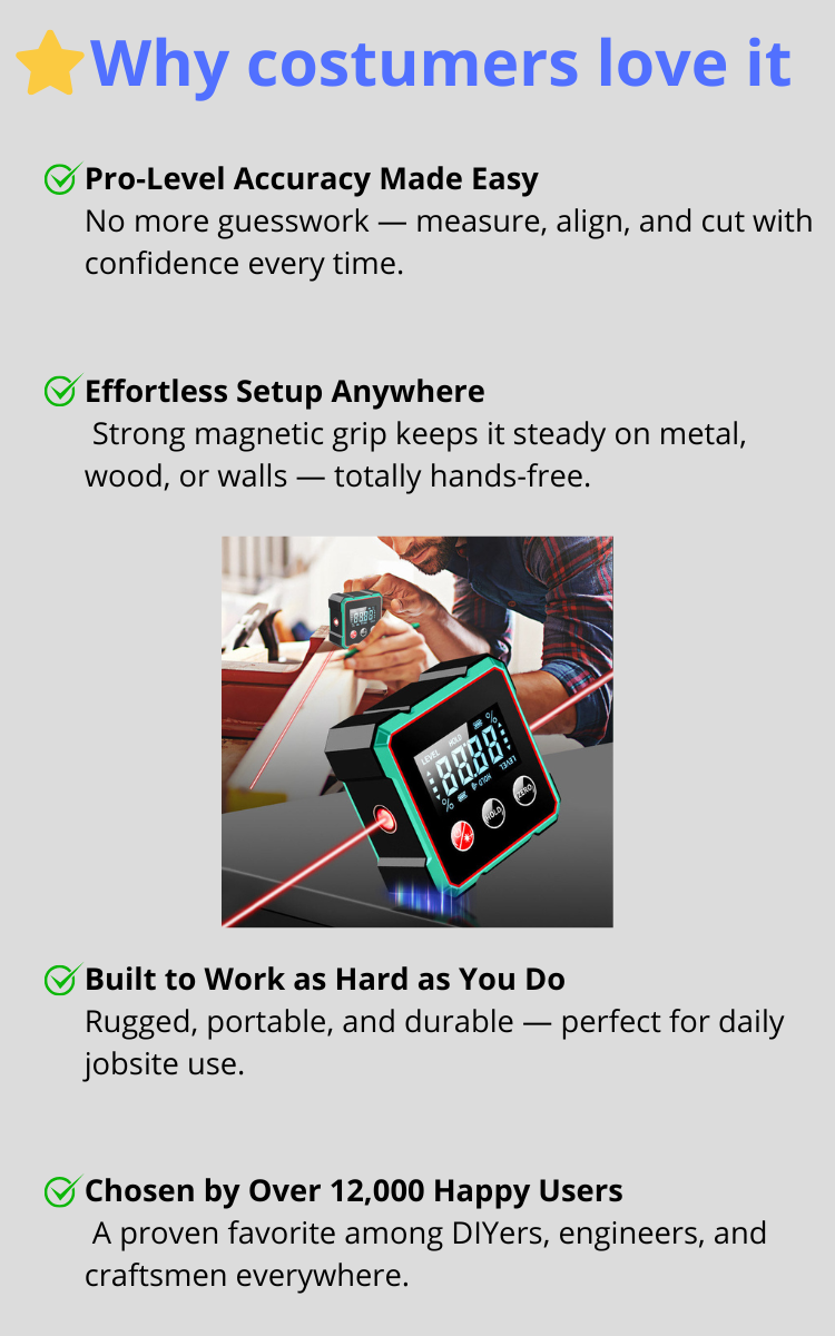 It provides precision up to ±0.2°, making it four times more accurate than traditional bubble levels. Perfect for both DIY and professional work.